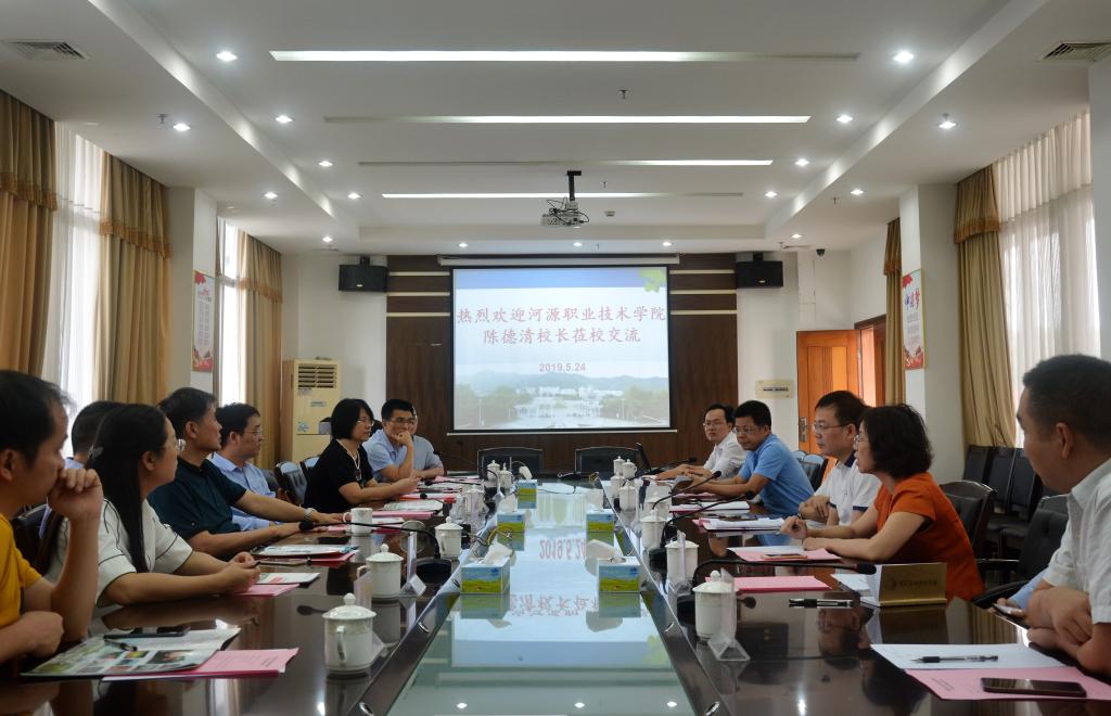 5月24日下午,河源职业技术学院校长陈德清一行8人莅临学校参观交流,太阳成官网在行政楼507会议室举行座谈。学校党委书记李文升、副院长刘瑞叶,党政办公室、教务处、招生就业处、师范教育系、电商学院等部门负责同志出席座谈会。