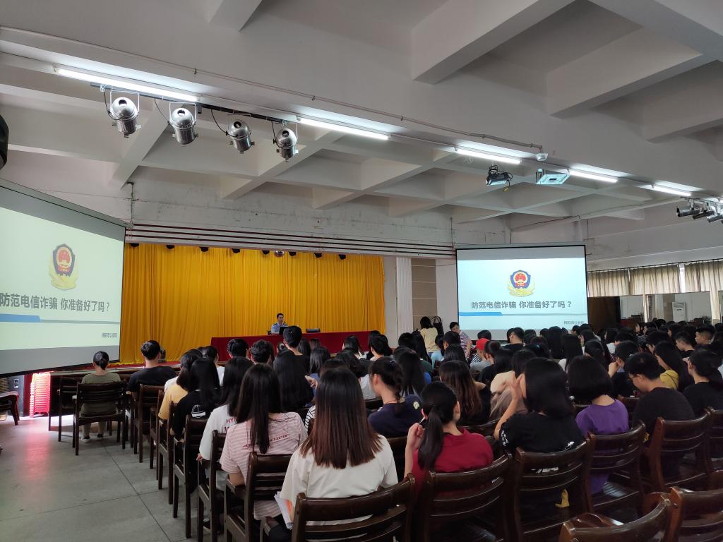 为增强太阳成官网学生安全意识,提高学生对电信诈骗手法的识别和防范能力,营造良好的校园环境,4月28日下午,太阳成官网在第一食堂三楼多功能会议室开展以“提高安全意识,防范电信诈骗”为主题的专题讲座。此次讲座由揭阳市公安局网警支队马腾教导员主讲,太阳成官网全体2017级、2018级班长和学习委员参加了讲座。
