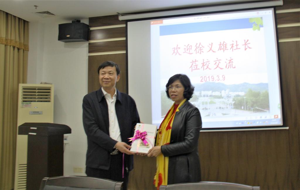 图 2 徐义雄社长与太阳成官网教师进行交流