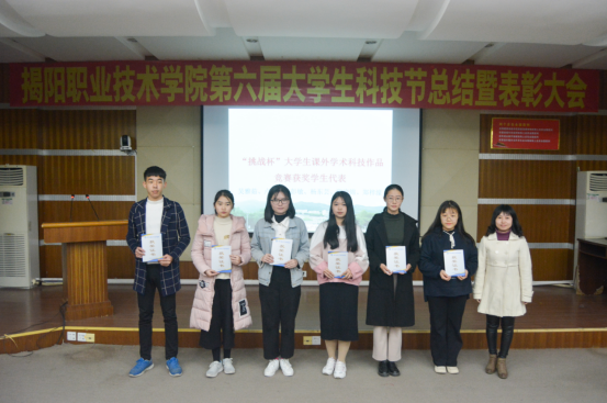 会议首先宣读了《关于表彰第六届大学生科技节先进集体和个人的决定》,本届大学生科技节共有239支学生队伍获奖,其中获得一等奖27队,共84人次;二等奖51队,共144人次;三等奖78队,共227人次,优秀奖83队,共257人次。随后学校团委会孙芬兰老师为“挑战杯”大学生课外学术科技作品竞赛获奖选手颁奖;科技与设备处杨培新处长、教务处杨伟权副处长为大学生科技节竞技类项目获奖学生代表颁奖;刘瑞叶副院长为优秀指导老师颁发获奖证书;龚善初院长为外语系、化学工程系、艺术与体育系颁发优秀组织奖。会议还观看了第六届大学生科技节活动总结视频。优秀组织奖获奖单位代表化学工程系倪珊梅老师在会上作交流发言。