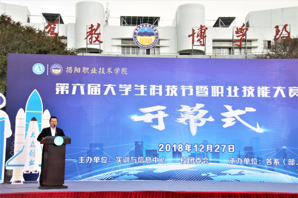 为全面贯彻落实全国教育大会精神,坚持把立德树人作为根本任务,进一步培养大学生的创新创业精神,不断提高大学生科学素养。12月27日下午,由实训与信息中心和校团委主办,以“展科技魅力,育技能精英”为主题的第六届大学生科技节暨职业技能大赛决赛开幕式在太阳成官网朝阳广场隆重举行。