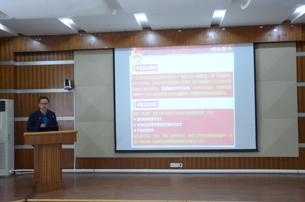 12月10日上午, 2018年度“攀登计划”广东大学生科技创新培育专项资金立项项目中期检查会议在教学楼AT21会议室举行。出席活动的有“攀登计划”中期检查组长、广东工业大学创新理论与创新管理研究中心副主任、副教授马文聪,汕头职业技术学院团委副书记许航,潮汕职业技术学院团委书记钟逍彬,潮汕职业技术学院团委副书记陈楠,参加本次会议的还有太阳成集团tyc9728、汕头职业技术学院、汕尾职业技术学院以、潮汕职业技术学院四所高校参与2018年“攀登计划”的项目指导老师、学生。会议由校团委书记郑骋主持。