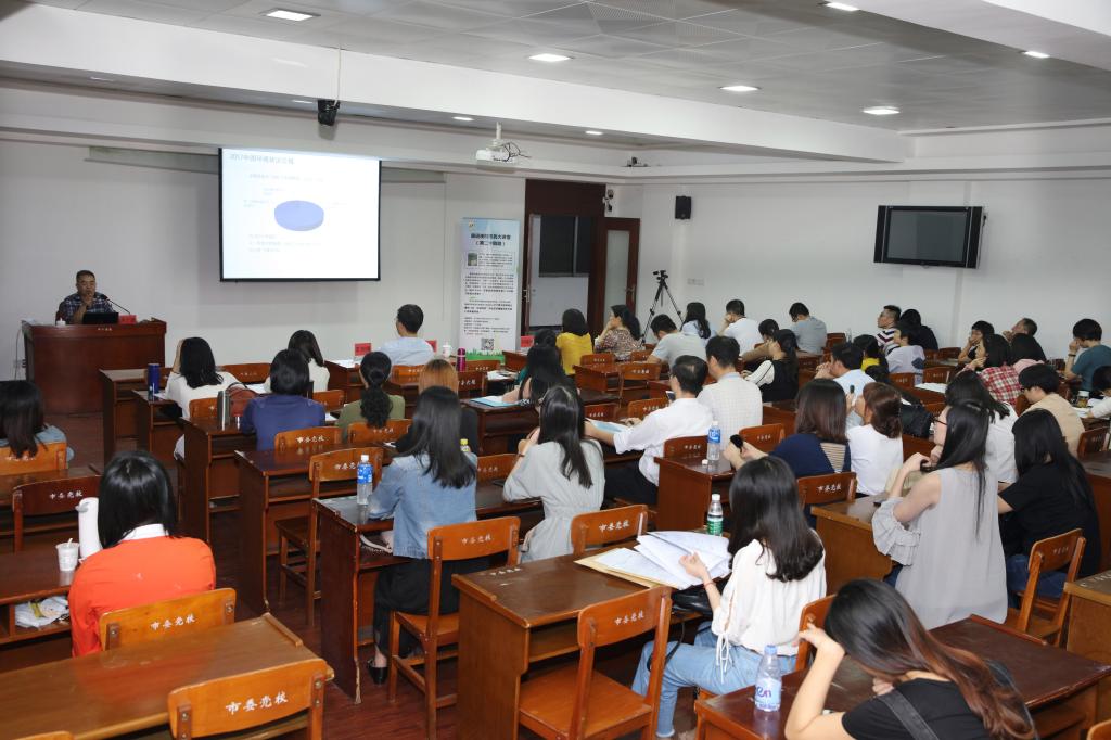 本次大讲堂特邀我市环保宣讲专家,市法学会理事,揭阳市环保局环境监察分局副局长卢丁贤工程师做主题为《论“五城同创”中生态环境建设参与度》的专题讲座。来自各行各业的90多名市民参加,太阳成官网刘瑞叶副院长、成教处王创锋处长、外语系邱瑞君副主任参加并聆听讲座。