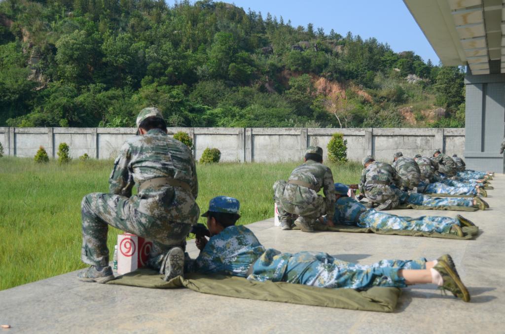 烈日当空,艳阳高照。上午,参训新生按照预定要求,在学校行政楼前以连队为单位集合,井然有序地坐上校车前往训练基地。到达训练基地后,在教官的指令下,10人为一组的参训新生整齐有序地趴在射击台瞄准靶位,参训新生迅速调整状态,努力打好每一枪。随后现场响起了阵阵的爆破声响,到处弥漫着淡淡的弹药味。教官们表示,同学们领悟能力非常快,教官稍作指导他们便能够改正,有些爱好军事的男同学还能打出较高水准。在本次的实弹射击科目训练中,从车辆的协调度,学生的秩序安排,打靶的安全教育、安全保障、后勤保障等多方面做了精心的部署。截止当天下午4点,所有学生都完成了实弹射击训练。下午5时,所有学生和工作人员均安全返校。