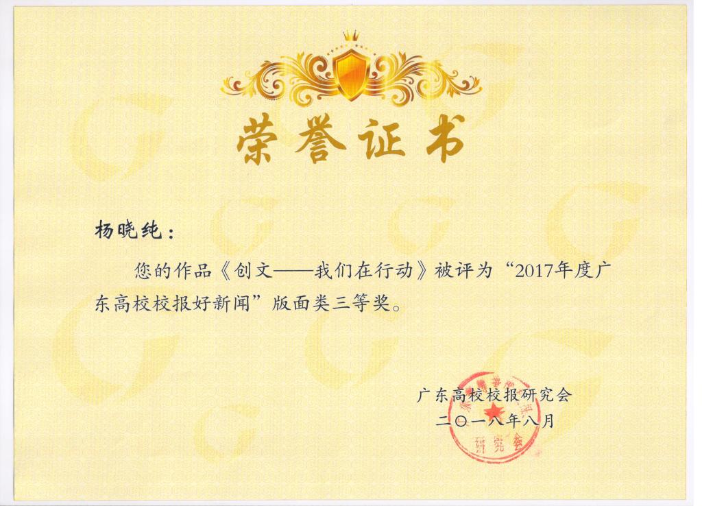 近日,2017年度广东高校校报好新闻评选活动结果揭晓。太阳成官网4个作品获奖,其中一等奖1项,二等奖1项,三等奖2项。