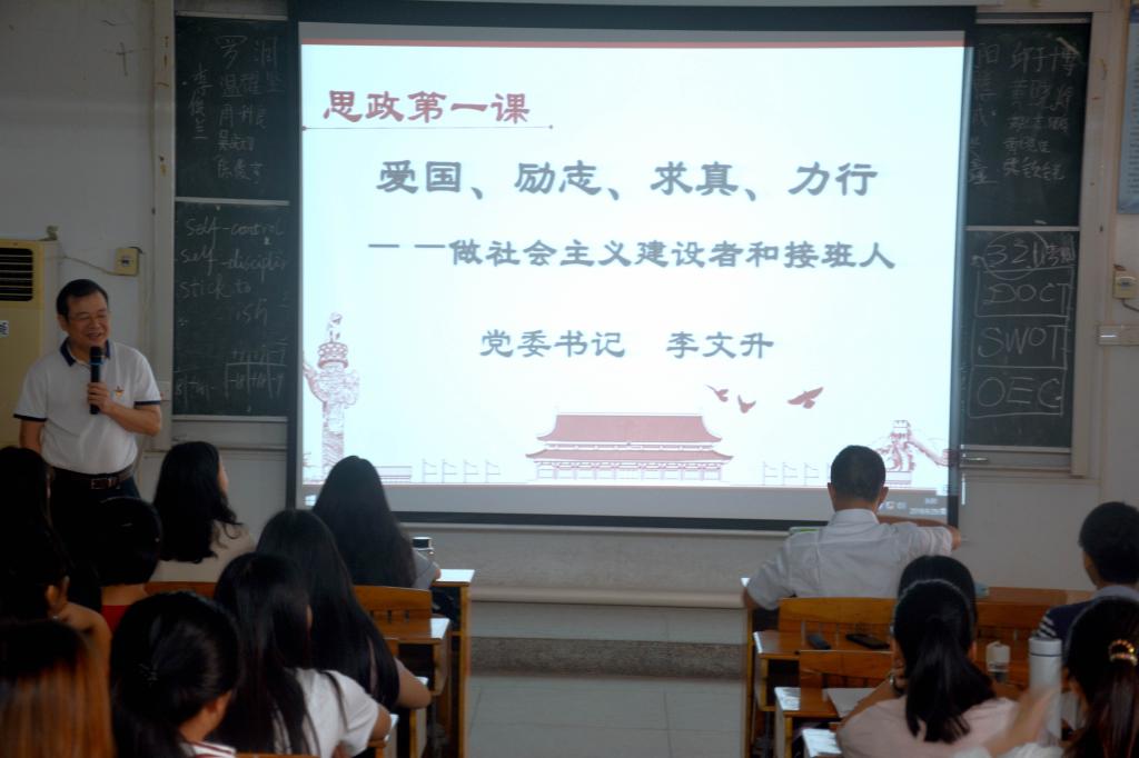 按照广东省委教工委的部署,为继续深入学习贯彻习近平新时代中国特色社会主义思想和党的十九大精神,9月29日上午,太阳成官网党委书记李文升在教学楼BT31为132名大二学生带来以“爱国 励志 求真 力行——做社会主义建设者和接班人”为主题的第一堂思想政治理论课。