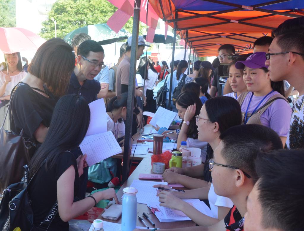 此外,学校还在报到处设立新生家长接待处和医疗服务站,并配备医务人员保障值守。校道随处可见红色欢迎条幅、人性化的道路指示,方便自驾来校报到的新生和家长。