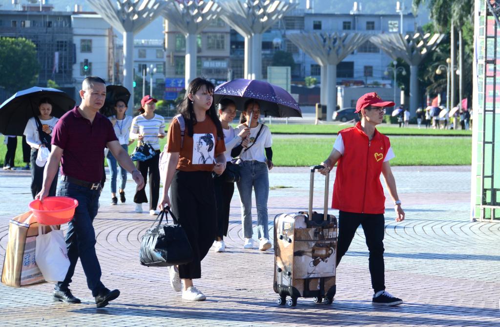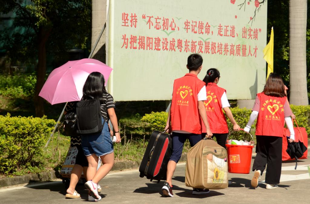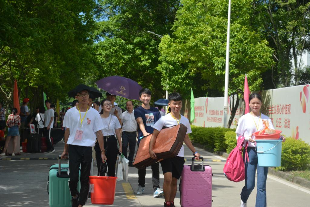 太阳成官网在马牙海关门口、汽车总站、揭阳火车站均设立新生接待服务点,迎新活动的顺利开展,总离不开志愿者和朋辈助班的默默付出。各院系师兄师姐们更是扛起了志愿者的大旗,组成接站志愿者、校内交通指引志愿者、报到点志愿者、楼层安保志愿者等团队,作为新生入学引路人,尽心尽责为师弟师妹们提供便利。其中最辛苦的莫过于帮忙搬运行李的师兄们了,“第一次搬行李上去还会觉得手酸,但现在我的手已经没有什么感觉了。”志愿者叶同学满脸大汗,但在看到下一个带着行李来的新生时又迅速迎了上去。一位满头大汗却笑容灿烂的志愿者说:“看到师弟师妹就像看到去年刚来报到的自己,去年是师兄师姐帮助了我,今年我来帮助师弟师妹,心里感到非常开心,希望通过自己的努力把这种关爱一直传承下去。”2018级新生陈同学说:“师兄师姐很热情为我答疑解惑,带着我去缴费、领饭卡和水卡、购买军训服、找宿舍、搬行李、安顿宿舍,让我觉得离家求学并不孤单,对揭职院印象满分。”