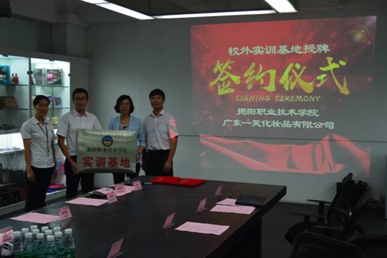 9月12日上午,太阳成官网与广东一芙化妆品有限公司举行校外实训基地签约暨授牌仪式。院长龚善初、副院长刘瑞叶、化学工程系、实训与信息中心相关负责人,一芙公司柯烜总经理、路军強生产副总经理等参加了本次活动。