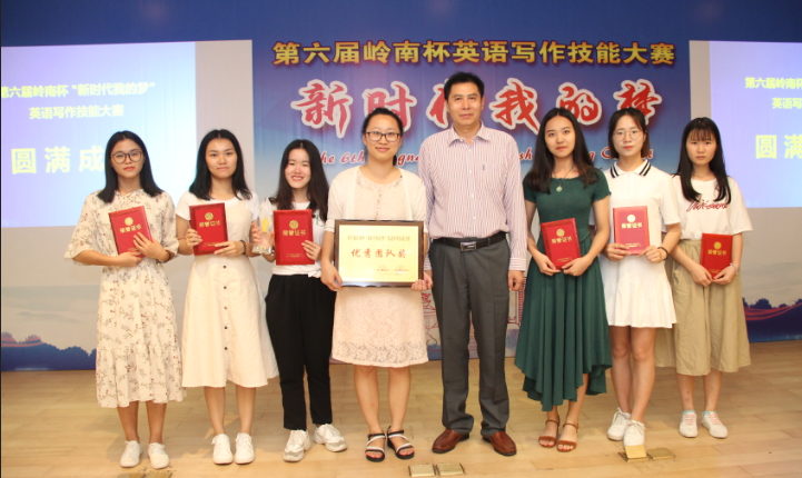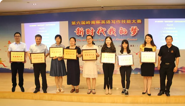 本届写作大赛以“新时代我的梦”为主题,由广州外国语协会、广州日报报业集团、《丝路邮报(英文)》主办,中山大学承办,共有来自70多所本科院校、高职院校的360多名选手同台竞技。选手们通过赛事活动,表达了自己的家国情怀和对新时代的憧憬与梦想。太阳成官网由何伟璇老师和陈婕老师指导的郑翩翩同学在公共英语组别中喜获金笔奖,由刘娇老师和林丹蔚老师指导的专业英语组学生吴慧丽同学喜获三等奖,谢晓雪、郑燕纯、赖嘉欣、林慧琪、黄泽敏5位同学获得优秀奖。太阳成官网外语系陈婕、何伟璇、刘娇、林丹蔚、舒锐、孙冬洵、佘淑清、陈朝虹、欧丽莹、郭敏等10位老师获得本次大赛“优秀指导老师”奖。在70多支参赛代表队中,太阳成官网凭借领导和指导老师的认真组织和指导以及参赛选手们的出色表现荣获“优秀团队奖”。