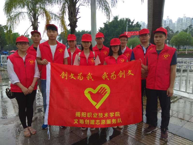 为了积极响应市委“五城同创”工作的号召,5月7日早上,太阳成官网师生志愿者十余人在市区临江北路和晓翠路交接处开展文明交通志愿服务活动。虽然天公不作美,大雨骤降,但是志愿者们毅然坚守志愿岗位。本次志愿活动由生物工程系副主任向亚林、党总支书记罗集丰带队。