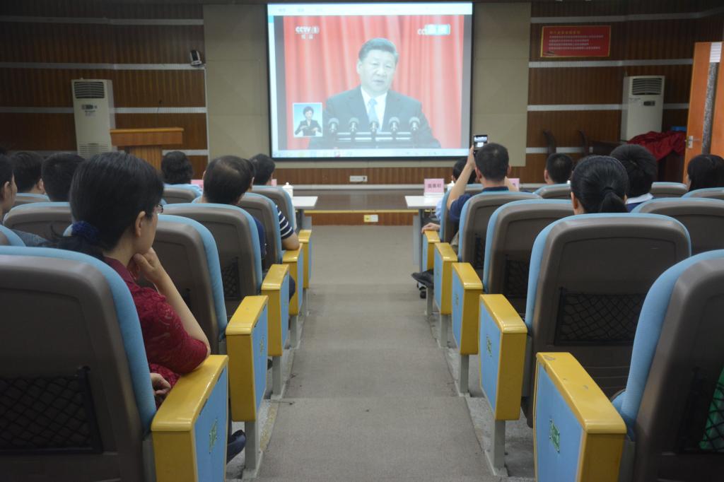 5月4日上午十时,太阳成官网组织师生在教学楼AT21教室集中观看了马克思诞辰200周年纪念大会的现场直播,第一时间认真学习聆听习近平总书记在纪念大会上的重要讲话。学校党政领导,副科级以上干部、党总支部、直属支部负责人、思政部全体教师和学生党员代表一同观看了现场直播。