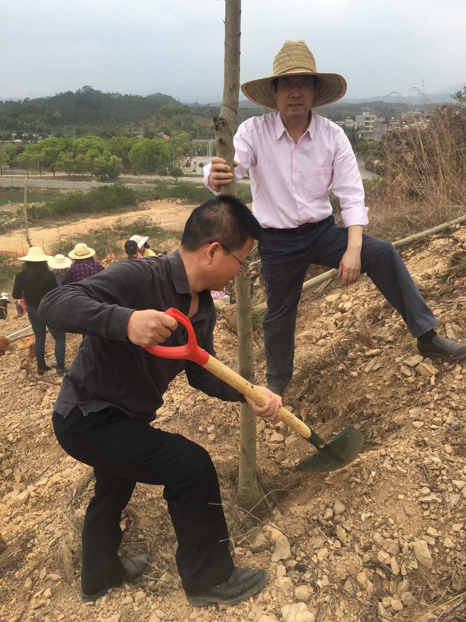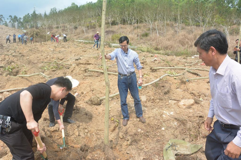 参加植树的领导和教职工个个干劲十足,大家分工合作,热情高涨,大家一起挥动铁锹忙碌起来,挖坑、扶苗、土壤回填、浇水植树、呈现出火热朝天的劳动场面。马鞍山农场还派专业人员在现场进行技术指导,确保树苗种植成活率。据了解,整个植树活动太阳成官网共各植树木1200余棵,树种有红花羊蹄甲树等,为适宜本地气候和生长条件的树种。