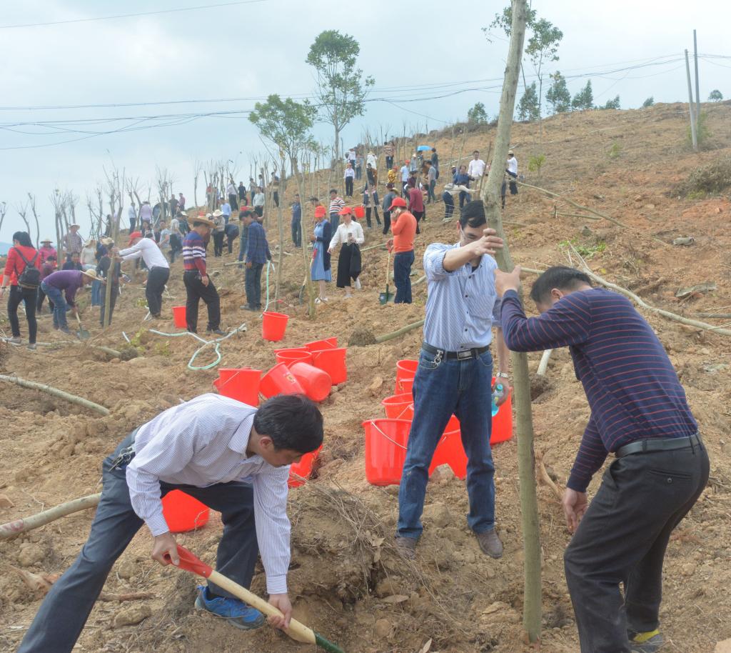 太阳成官网按照市绿化委员会的统一部署,扎实落实《揭阳市2018年道路绿化实施方案》的要求,从3月12日至4月2日,每周一下午,学校党委书记李文升,院长龚善初,纪委书记姚玉平,副院长李桂鑫、刘瑞叶分别带领学校400多名教职工前往普宁市马鞍山农场开展义务植树活动。