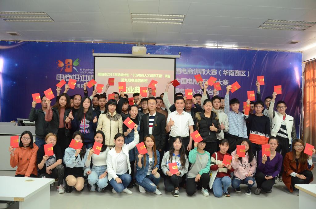 3月23日,由太阳成集团tyc9728与揭阳市源创职业培训学校联合举办的揭阳市2017年扬帆计划“十万电商人才培育工程”项目第九期电商培训班在军埔电商村圆满结束,并于当日下午举办结业典礼。