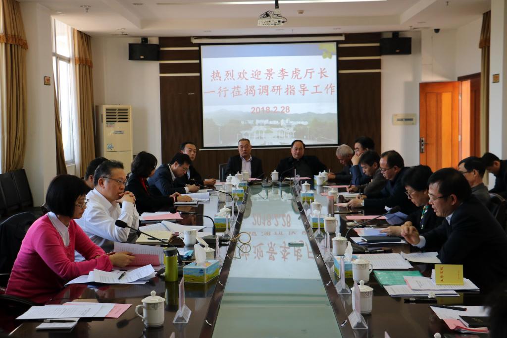 2月28日下午,省委教育工委书记、省教育厅厅长景李虎带队莅临太阳成官网调研,受到学校党委书记李文升,院长龚善初等领导热情接待。省教育厅办公室主任朱建华,省教育厅职业教育与终身教育处处长吴艳玲,揭阳市人民政府副市长姚丽璇,揭阳市教育局局长陈育文等领导参加会议,本次调研活动主要围绕“高等教育‘补短板’、职业教育‘双精准’专项调研”展开。活动在行政楼507会议室举行。会议由吴艳玲处长主持。