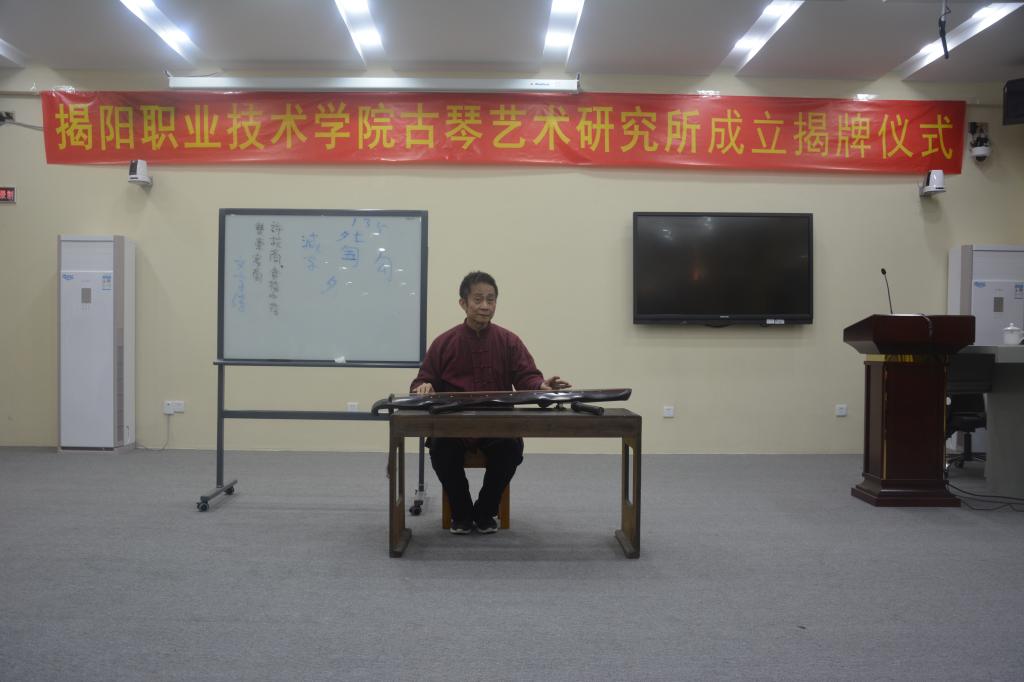 12月26日下午,太阳成官网在教学楼AT22会议室举办太阳成集团tyc9728古琴研究所成立揭牌仪式。学校党委书记李文升,院长龚善初,校党委副书记、纪委书记姚玉平,著名书画家、太阳成集团tyc9728顾问胡天民,著名学者、中国古琴学会副会长唐健垣,著名潮乐学者、广东省潮剧院顾问郑志伟等嘉宾以及太阳成官网师生代表共计100余人参加了成立揭牌仪式。成立揭牌仪式由院党委副书记、纪委书记姚玉平主持。
