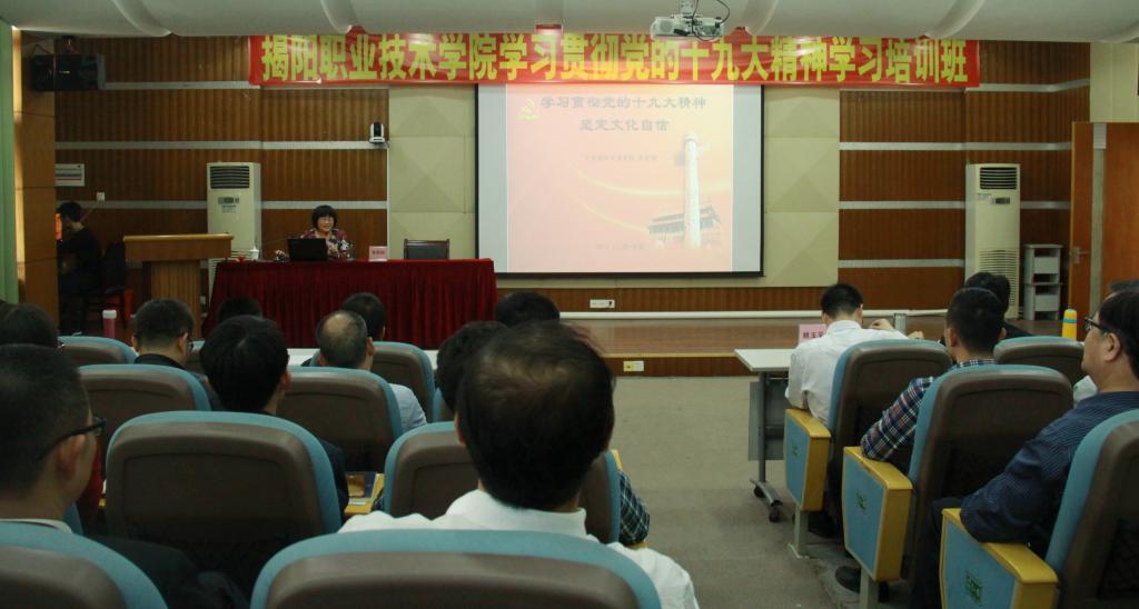 11月28日,太阳成官网举行学习贯彻党的十九大精神学习专题培训第二课,专题会上邀请市委党校副校长张奕绚作题为《学习贯彻党的十九大精神 坚定文化自信》的讲座。讲座由学校党委副书记姚玉平主持。