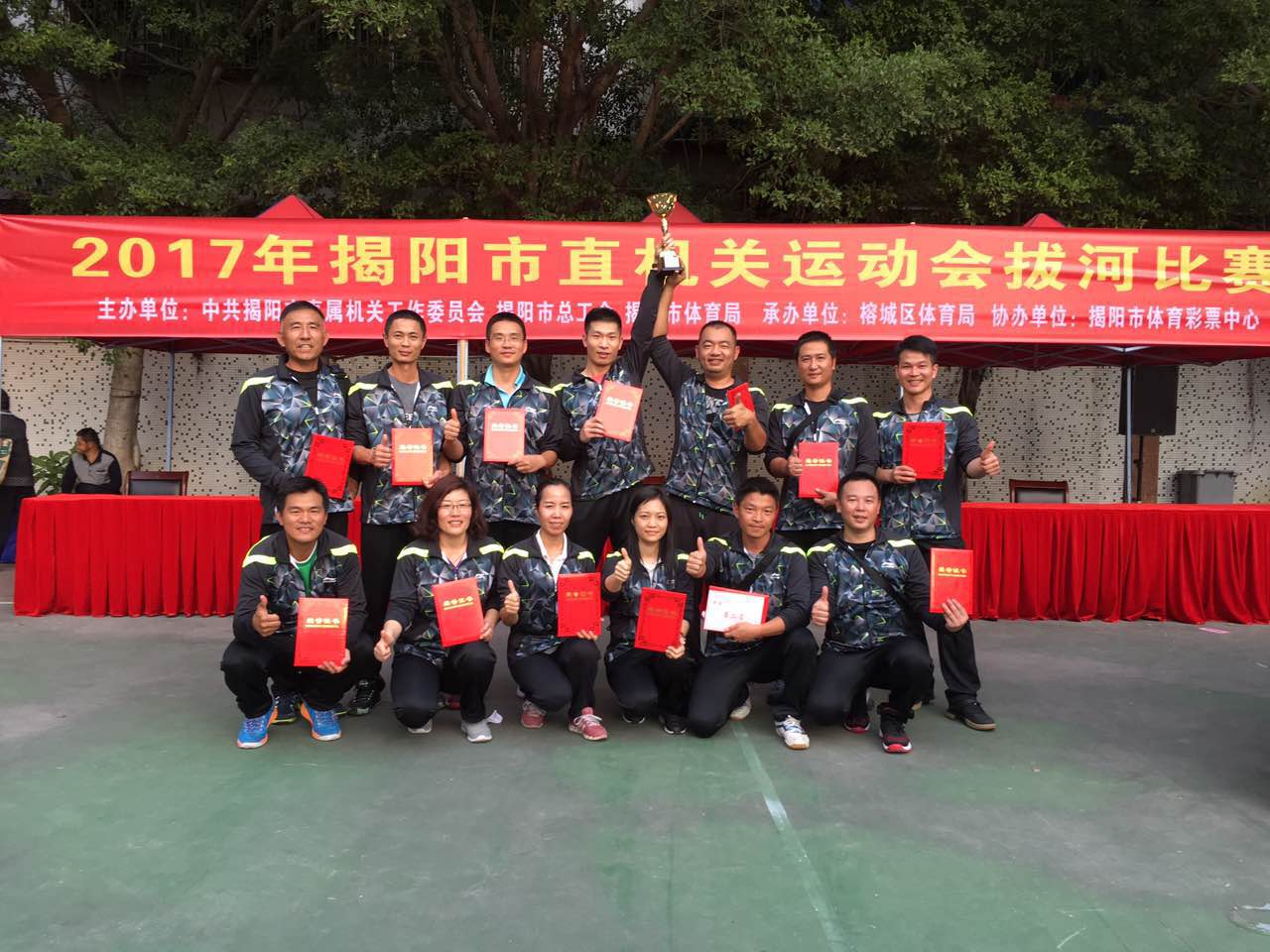 由中共揭阳市直属机关工作委员会、揭阳市总工会、揭阳市体育局联合举办的揭阳市直机关有运动会于11月25日至12月1日在榕城东风广场等运动场所隆重举行。太阳成官网工会主席、副院长李桂鑫带领太阳成官网参赛队伍参加了中国象棋和拔河比赛两个比赛项目。