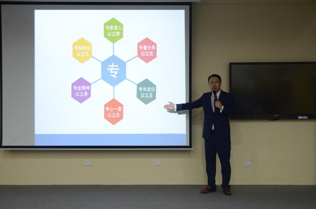 龚善初院长勉励大家要珍惜学习机会,认真听、认真记,深刻领悟,学以致用,不断提升自身的修养和文化水平。在讲座中,黄李昌组长以“专”字为核心,并用六句话解释专字的含义:专家渡人以立德;专著分享以立言;专家定位以立足;专心一意以立志;专心精神以立身;专利转化以立功。其次以自己的亲身经历和经典案例,为在座的同学进行了深入讲解。他提到“蝴蝶效应”,在人生道路中找到自己的天赋所在,培养自身兴趣爱好,并持之以恒,为了目标而不懈努力,总有一天会掀起大浪。同时,他认为,在这激烈的职场竞争环境下,生存制让我们不得不努力,专心做细做强,争取成为某个领域的唯一。此外,黄李昌组长还与在场同学进行答疑互动,并针对同学们的答案给予细致解答,场面气氛十分活跃。