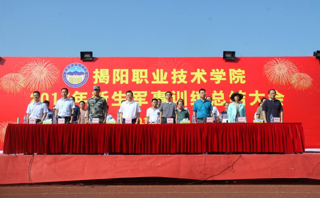 9月28日上午,我院举行2017级新生军训会操表演暨总结大会。院党委书记李文升,院长龚善初,院党委副书记姚玉平,副院长李桂鑫、刘瑞叶,梅州市梅县区国防教育训练基地教官队长黄育坤以及学院教务处、学生工作处负责人、各系部院负责人等出席活动,共同见证新生军训的成果。大会由学生工作处处长王烁生主持。