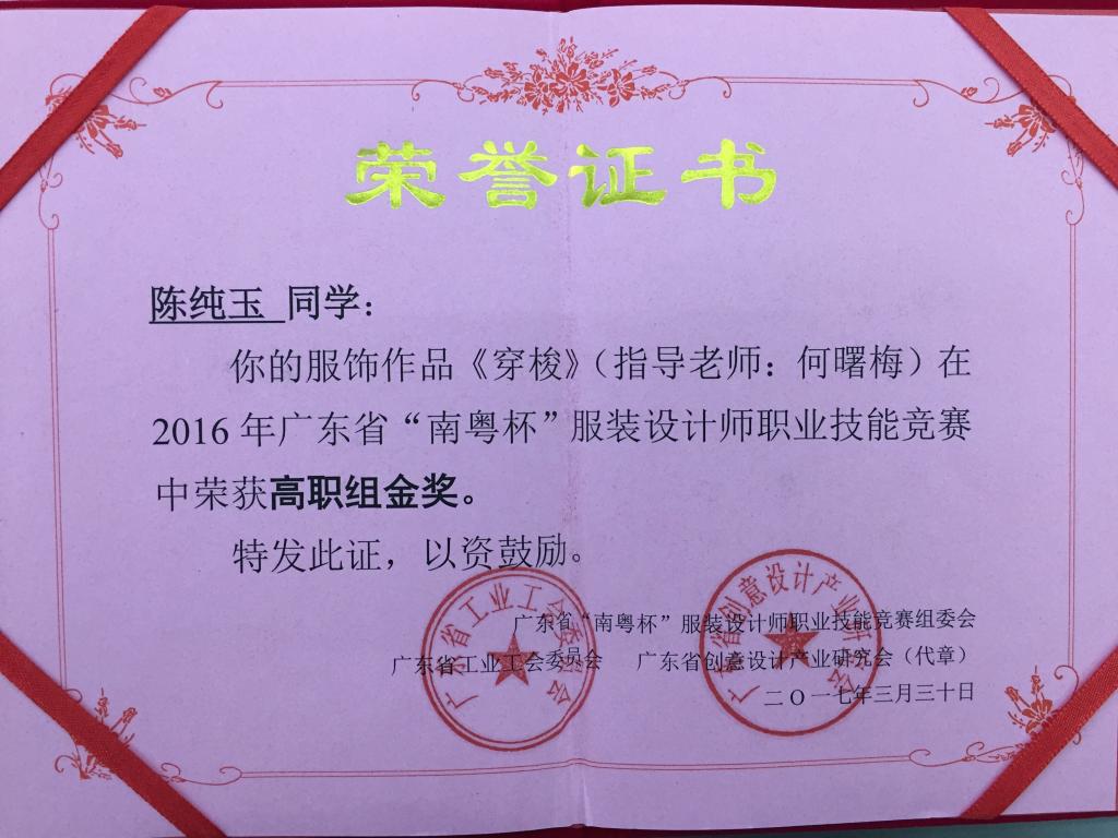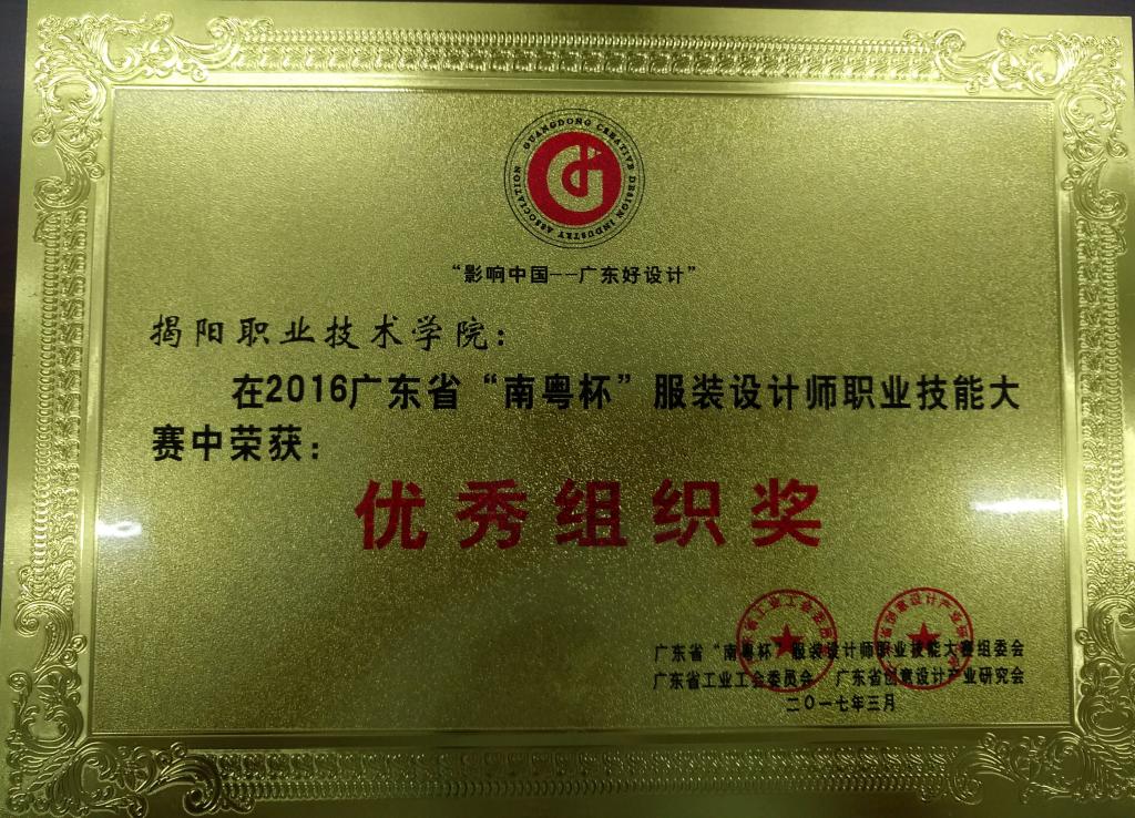 由于我院学生成绩突出,大赛还特别授予我院“广东省优秀服装设计教育院校”和“优秀组织奖”称号。
