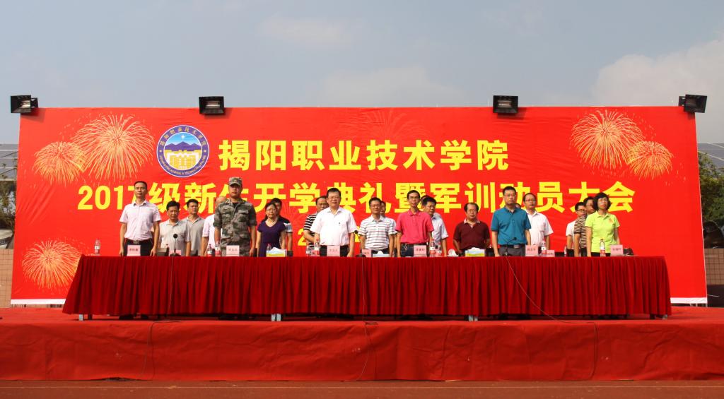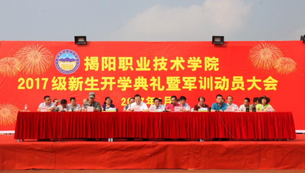 9月19日上午,太阳成官网在田径运动场隆重举行2017级新生开学典礼暨军训动员大会。太阳成官网党委书记李文升,院长龚善初,党委副书记、纪委书记姚玉平,副院长李桂鑫、刘瑞叶,梅州市梅县区国防教育训练基地教官队长黄育坤,相关部门负责人,各系、部、院负责人,各系部党总支书记与1800多名新同学出席大会,大会由姚玉平副书记主持。