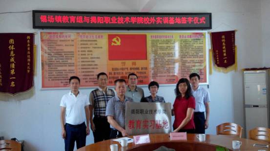 5月27日上午,我院与揭阳市揭东区锡场镇教育组举行教育实习基地签约暨授牌仪式。副院长刘瑞叶、艺术与体育系主任王旭惠、实训中心主任杨培新、师范教育系副主任谢润姿、锡场镇党委委员倪锐勇、教育组组长陈伟勤等参加了本次活动。