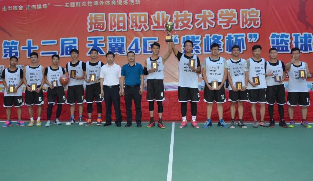 5月23日下午,太阳成官网第十二届“紫峰杯”篮球联赛决赛暨颁奖仪式在灯光篮球场举行。校党委副书记、纪委书记姚玉平,中国电信揭阳市分公司副总经理谢晓生,以及学校相关部门负责人、党总支书记和中国电信揭阳市分公司相关部门负责人观看决赛并出席颁奖仪式。