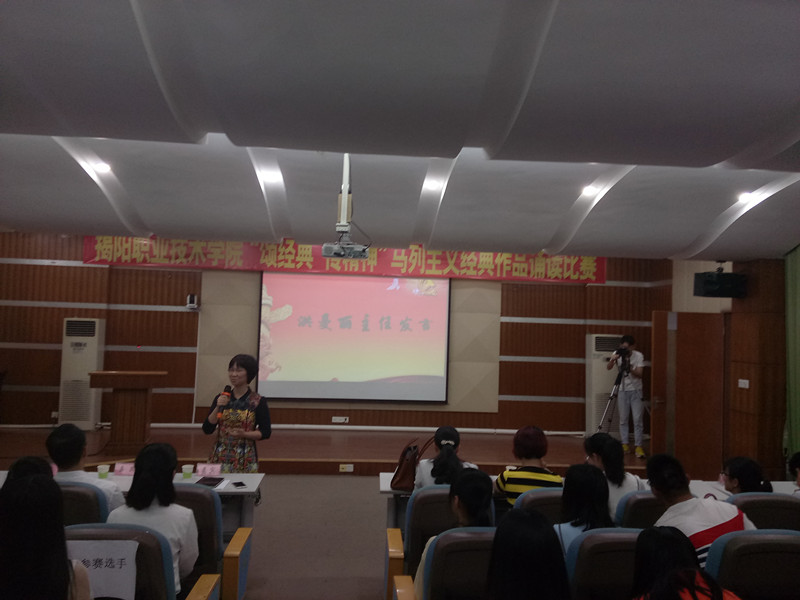 为践行习近平总书记在全国高校思想政治工作会议上的讲话精神,发挥高校思政课主渠道的引领作用,进一步拓展大学生思想深度,打造“学经典,诵经典”的阅读平台。思政部与学院团委会于5月4日中午一点半在慈云教学楼多功能媒体会议厅AT21联合举办“颂经典传精神”马列主义经典作品诵读比赛总决赛。出席本次活动的嘉宾有思政部领导和全体思政课教师、学院团委孙芬兰老师,院组织代表及各系部等代表。