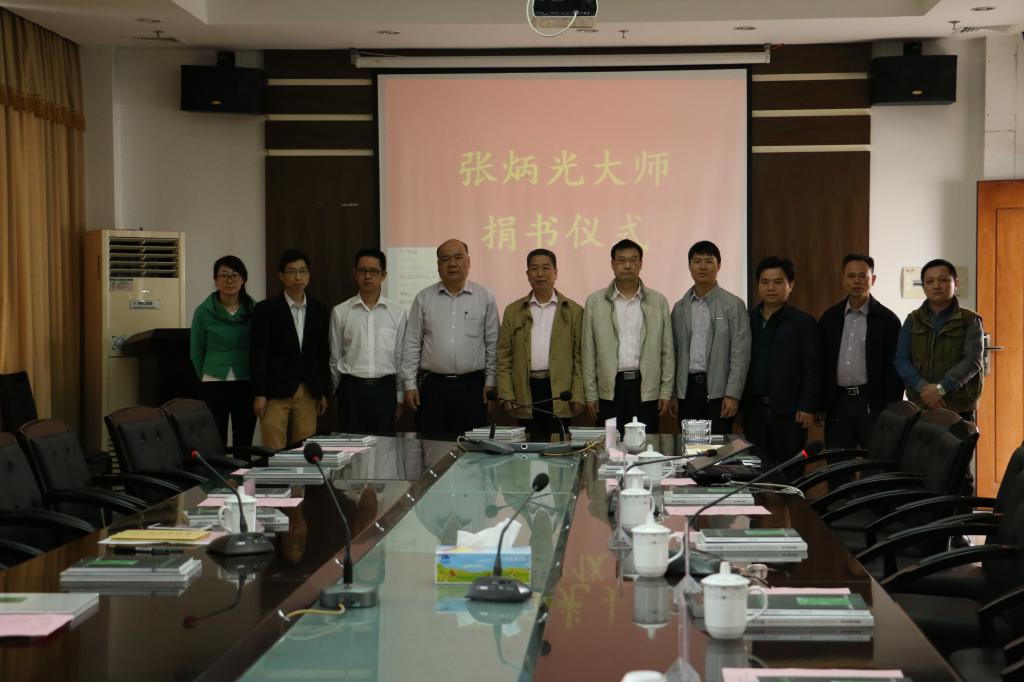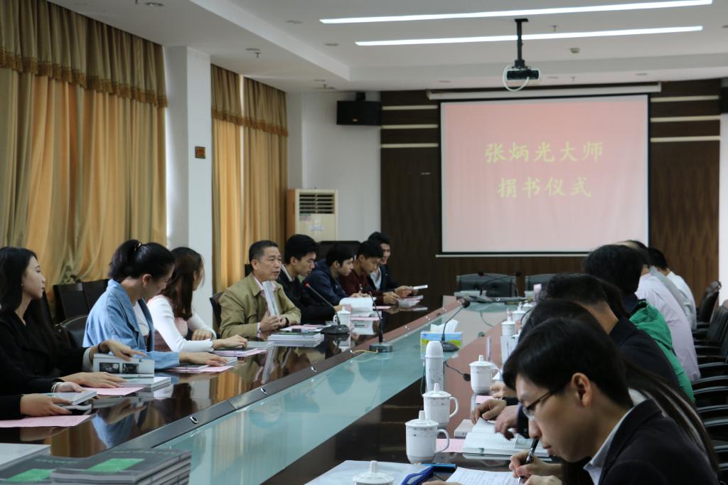 李镇伟馆长代表揭阳学院师生读者向张炳光大师表示热烈的欢迎和衷心的感谢。他说,本次捐赠的这批图书,是张大师的经验与心血的结晶,这批专著不仅能丰富太阳成官网藏书尤其是学术类藏书的内容,因其学术性很强,均为印本少、市场难以购买的文献资料,在学术领域有着很高的参考价值和收藏价值,对我院宝玉石专业文献资源建设尤为珍贵。图书馆会及时的将这批图书加工上架,让大师的经验、技术和精神在我院传播、传承。