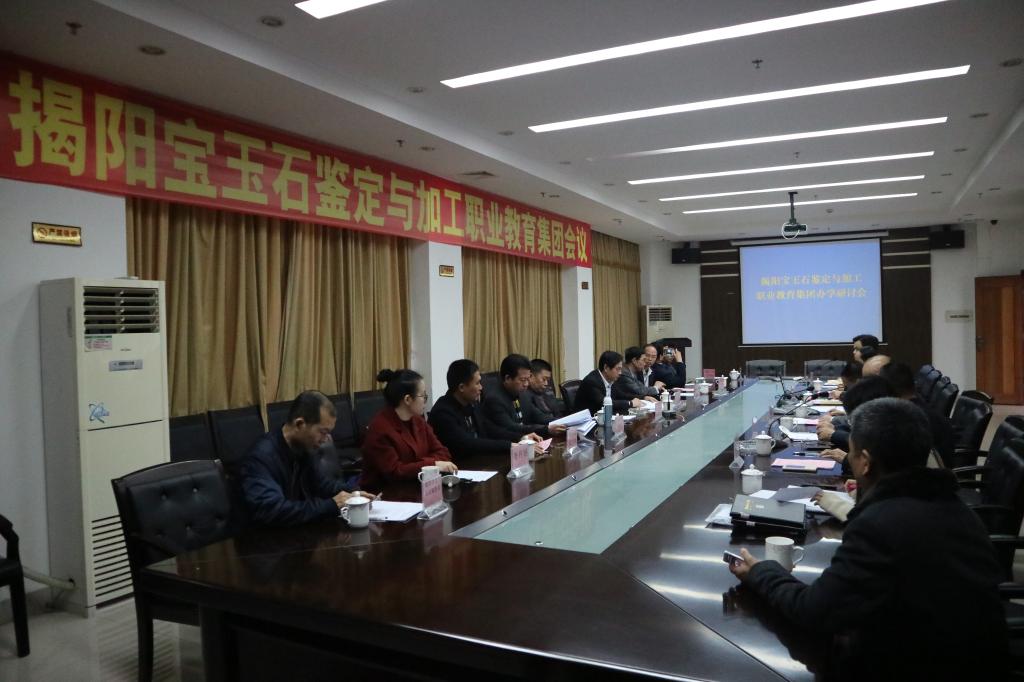 3月10日,揭阳宝玉石职教集团办学研讨会在我院行政楼507会议室召开。出席会议的有广东贵雅天下工艺有限公司董事长谢锡杰,揭阳市工艺美术协会秘书长夏浩真,揭阳玉器产业协会执行会长林少波,广东玉商集团有限公司董事长李悦伟、营销经理李丹妍,揭阳市综合中专学校教务科长黄少波,揭阳市高级技工学校招生就业科长许伟强,揭阳经鼎电子商务有限公司总经理张鹤腾,揭阳市阳美宝玉石有限公司业务经理夏焕嘉,揭阳日报社副主任陈镇文,广东省工艺美术大师张炳光、郑少山;学院院长龚善初,副院长李桂鑫,教务处处长黄英铭,机电工程系主任孙培明、副主任林若波、党总支书记方春城,宝玉石教研室主任钟祥涛,以及宝玉石专业教师和学生代表。
