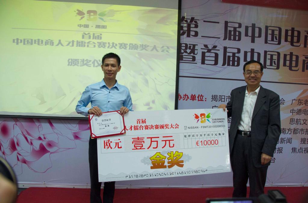 此次一共有417名来自全国各地的选手报名参加,报名销售揭阳特色产品,来自全国各地12强选手顺利进入为期43天的决赛,选手入住军埔学校,各显技能及资源整合,大赛组委会安排选手走访揭阳中德金属城,安排讲师授课培训。经过紧张的比赛最终排名:第一名:苏世、第二名:陈威、第三名:林凯彪、第四名:林金源、第五名:廖想有、第六名:卢桂武、第七名:陈贤华、第八名:何晓妍、第九名:李昱江、第十名:黄曼凯。