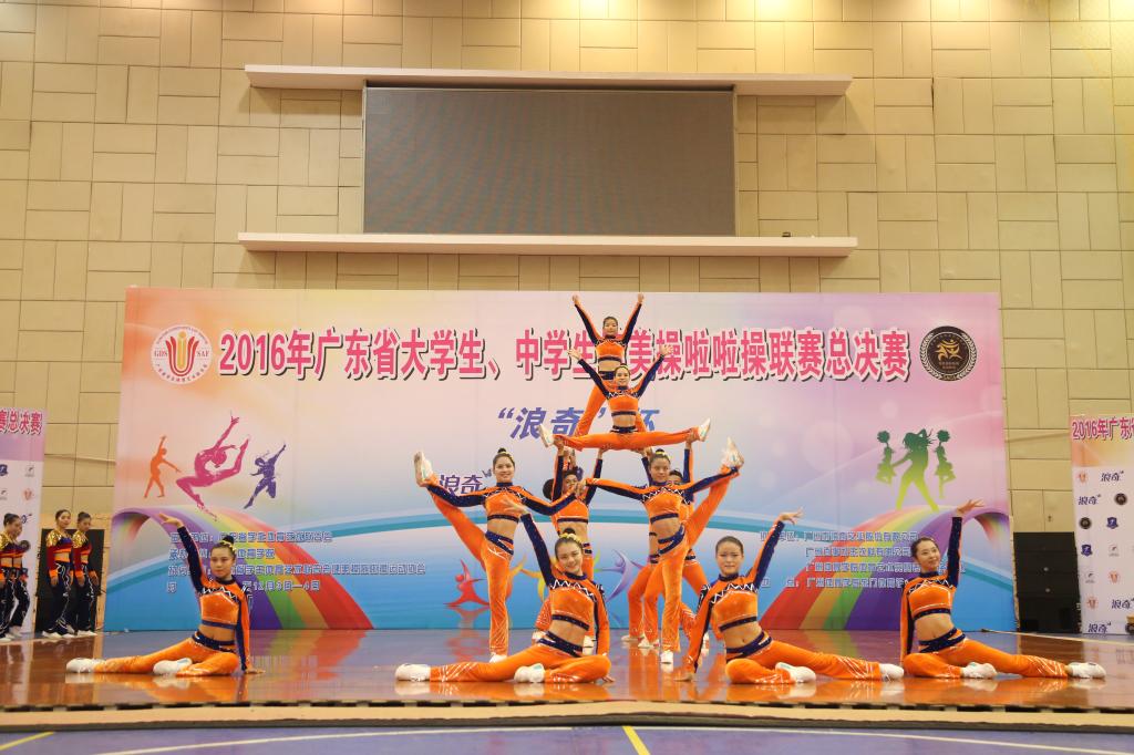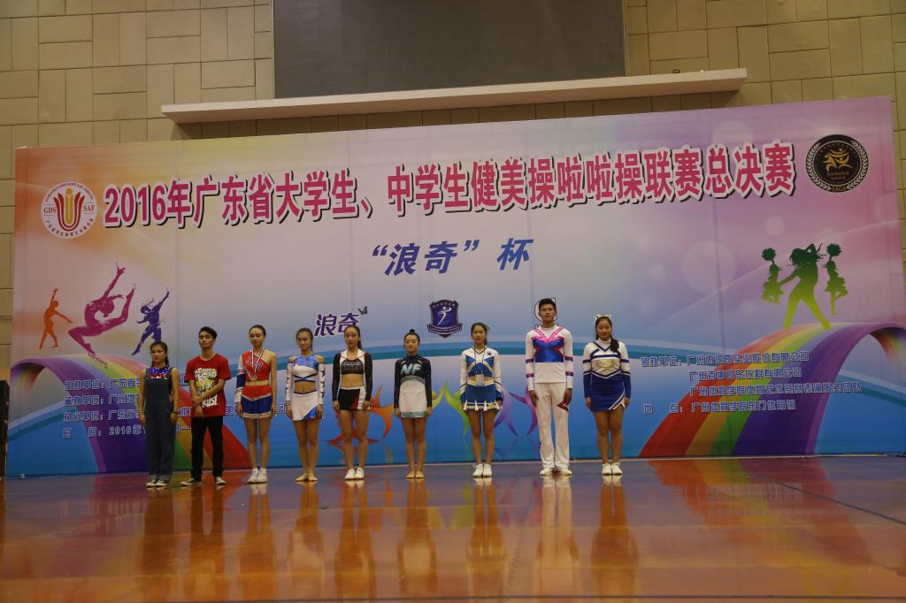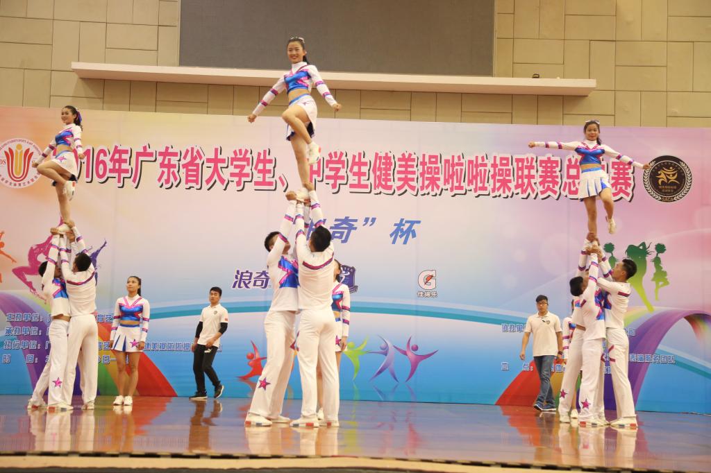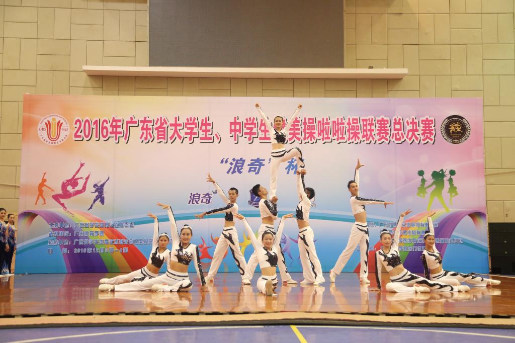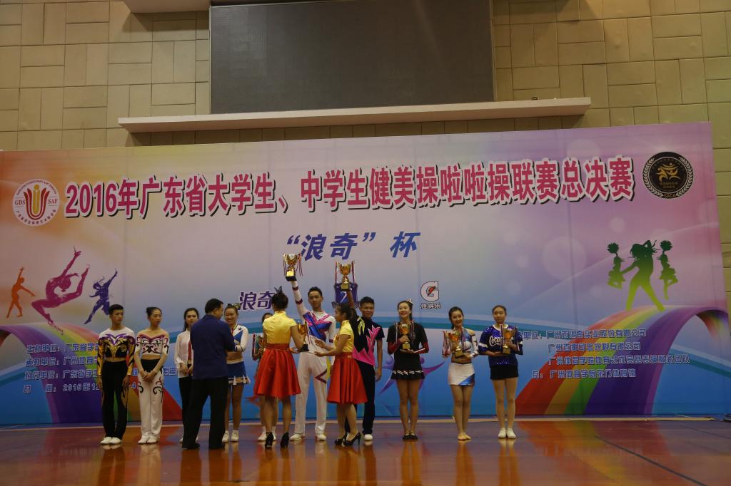 2016年12月4日,广东省大、中学生健美操啦啦操联赛总决赛在广州体育学院东门体育馆完美落下帷幕。全省共有32所高校,136支队伍参加了本次比赛,竞争异常激烈。太阳成官网健美操队经过紧张的角逐,荣获1项第一名、2项第二名、1项第三名、1项第五名,体育院校乙组团体总分第三的优异成绩,为太阳成官网争得了荣誉。