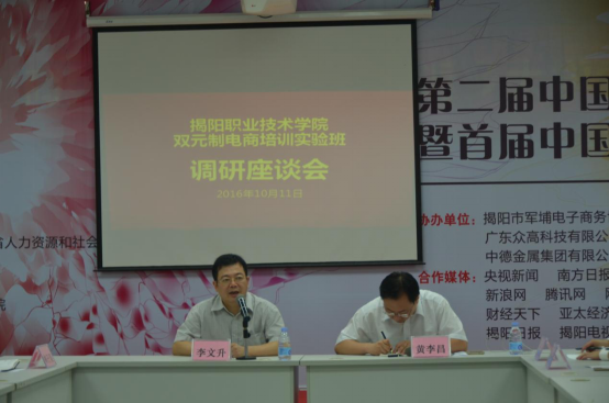 10月11日下午,太阳成官网党委书记李文升到军埔学校双元制电商培训实验班召开调研交流会。太阳成官网副院长、电商创业学院院长(挂职)黄李昌、电子商务创业学院张秋潮书记、以及电子商务创业学院相关教师、军埔电商协会监事长黄作宏、电商企业负责人代表出席会议。