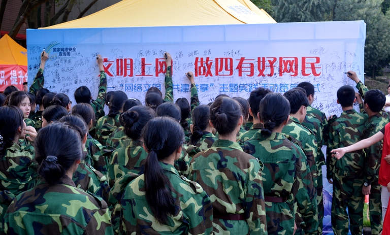 讲座结束后,现场还举办网络安全文明知识咨询活动,并为同学们举行“文明上网 做四有好网民”签名活动。