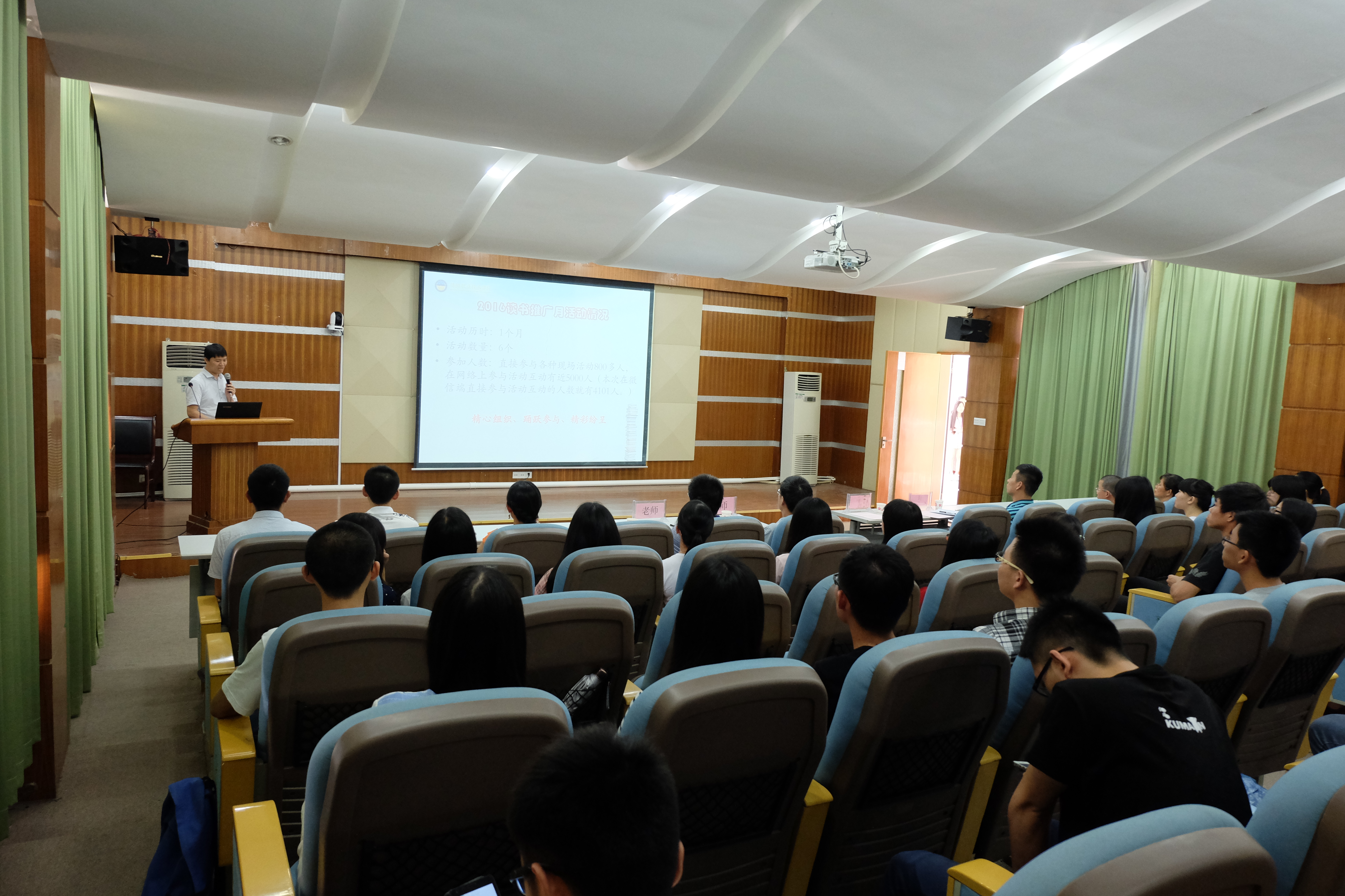 5月23日下午3点,在教学楼AT21隆重举行了“书香校园”读书月活动闭幕式暨颁奖仪式。学院党委委员、副院长姚玉平、图书馆馆长李镇伟、师范教育系主任李汉潮、外语系党总支书记兼院团委书记郑骋、图书馆各部门主任、老师等100多人出席了闭幕式。