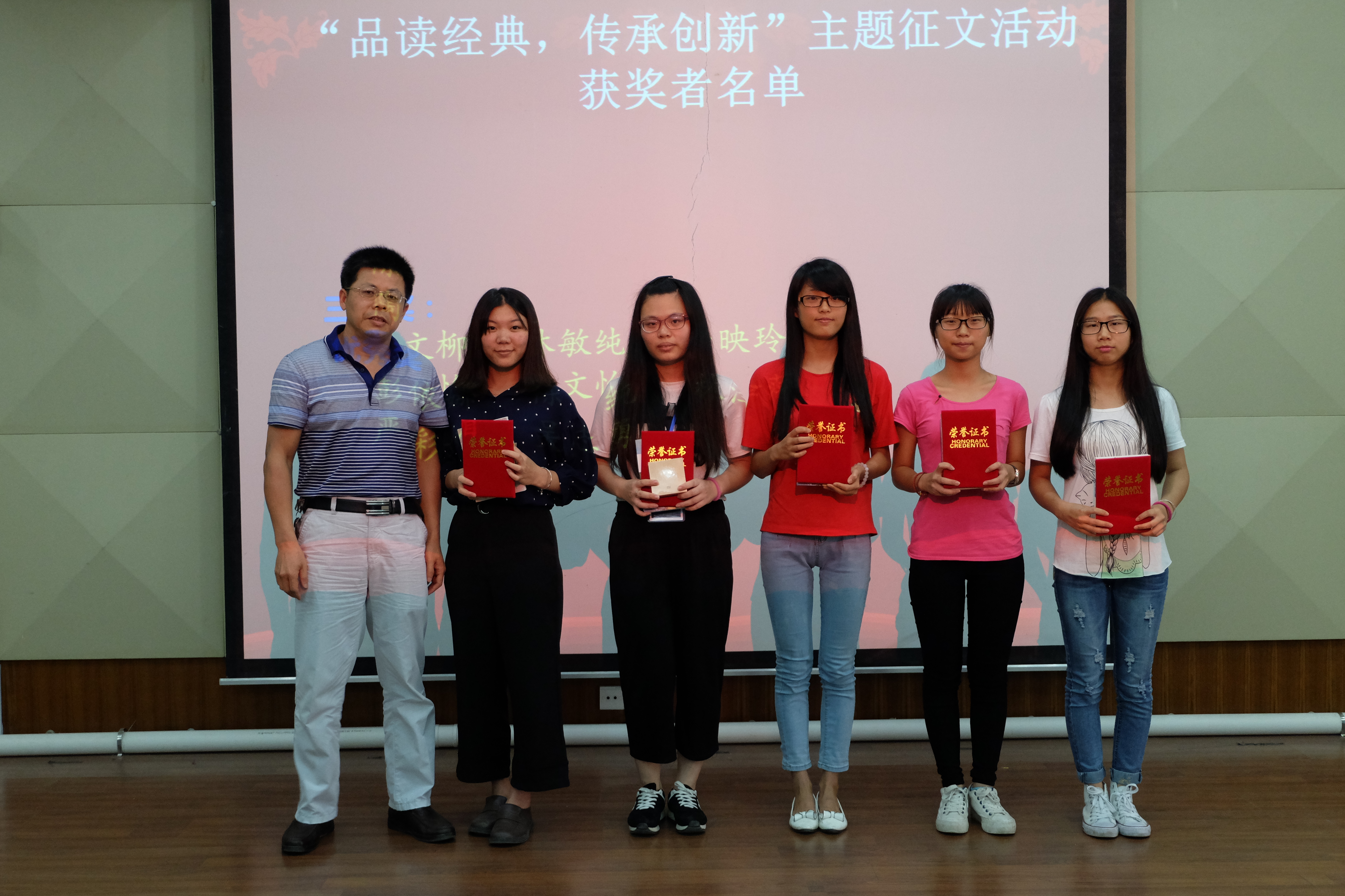 随后,到场领导为获奖学生颁发荣誉证书和奖品并合影留念。