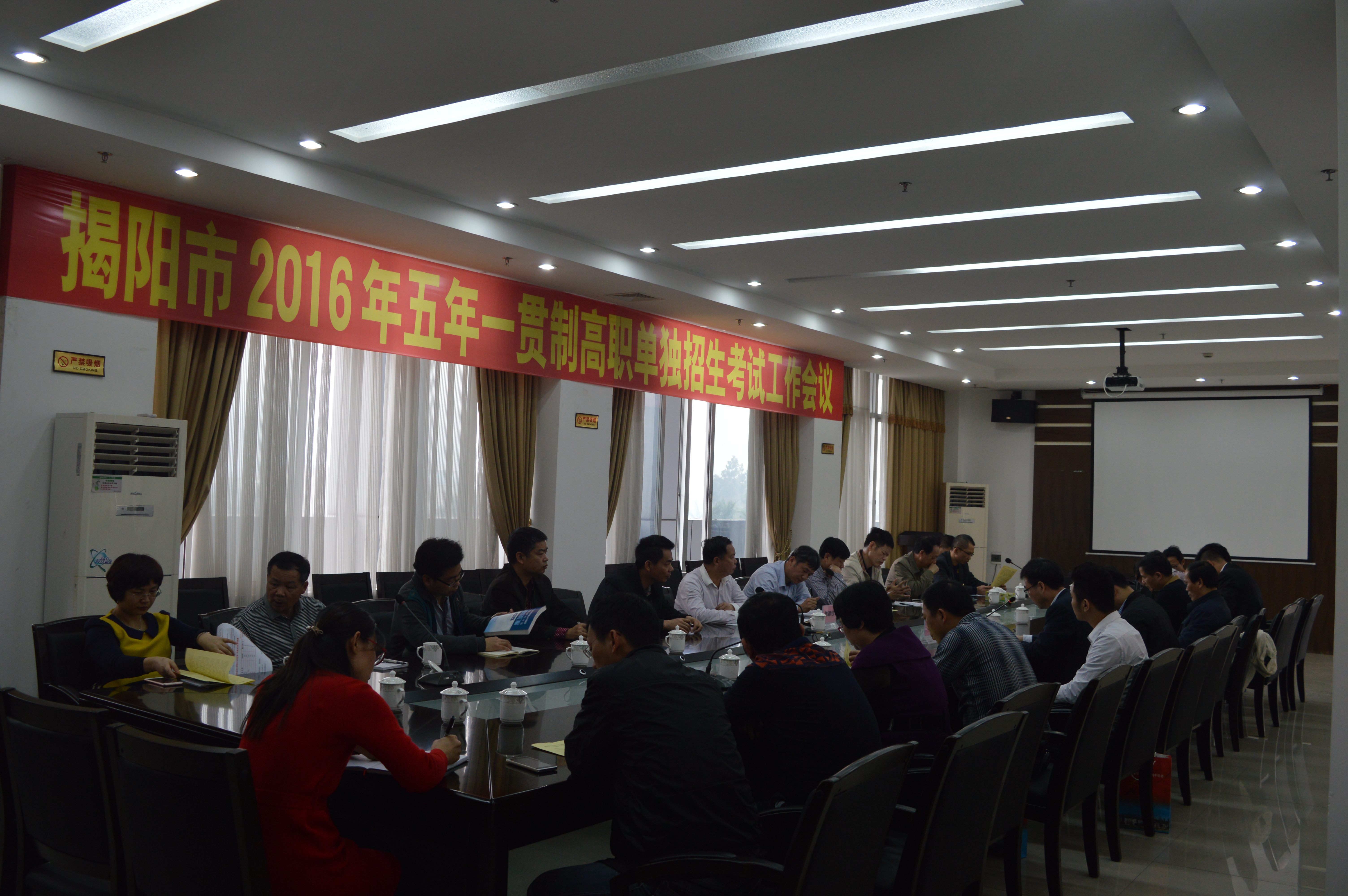 3月9日上午,揭阳市2016年五年一贯制高职单独招生工作会议在我院召开。学院党委委员、副院长姚玉平,揭阳市招生办主任陈建钦,各县(市)区招生办主任等领导出席了会议。会议由学院招生就业处处长陈磊主持。