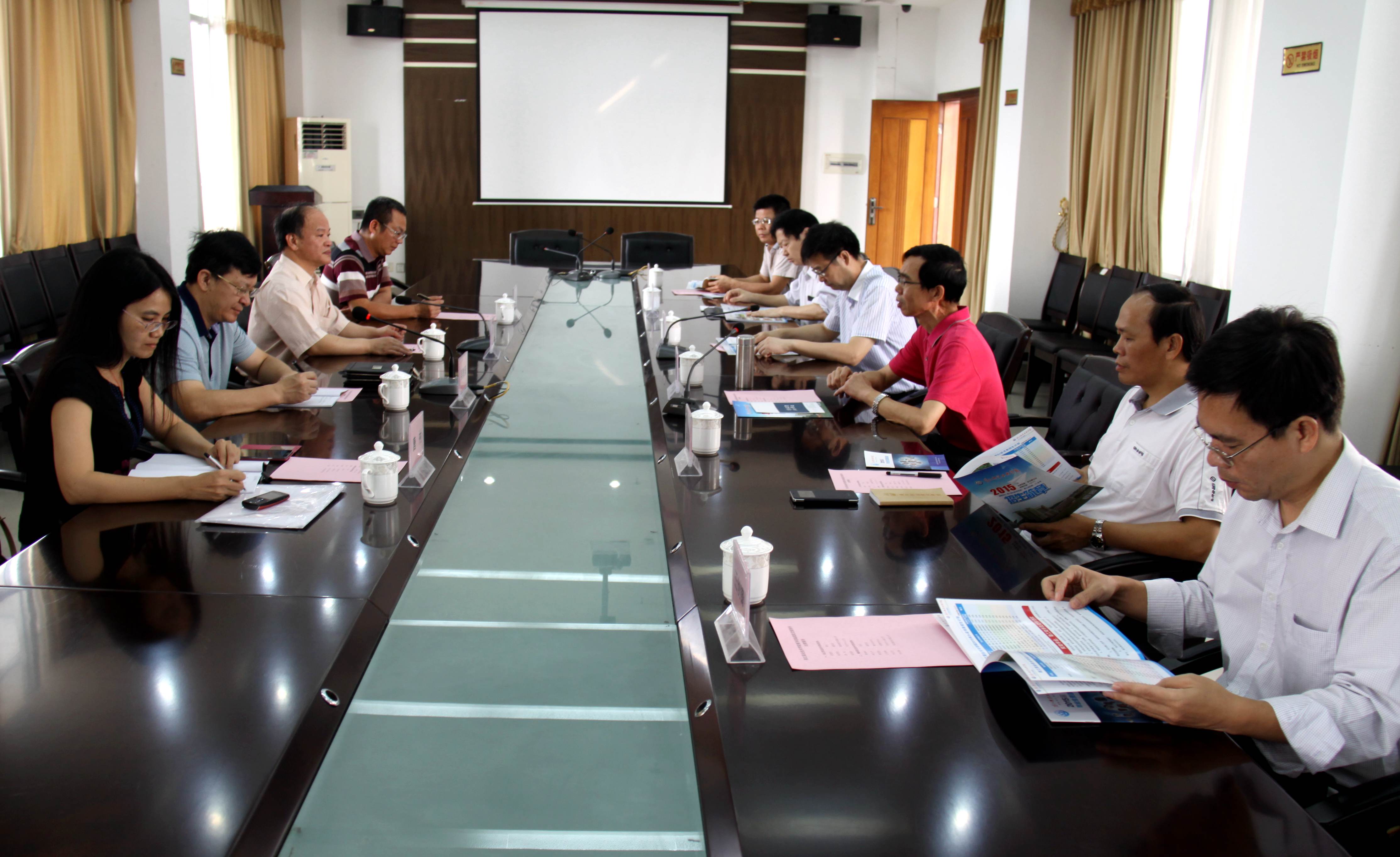 交流会上,龚善初院长代表学院向吴教育院长介绍了学院的基本情况。姚玉平副院长介绍了近年来我院在专业建设;专业如何适应地方经济转型、更好实现产教融合,成立电商创业学院;如何加强校企合作、推进实践教学管理,推进省级重点专业模具专业、宝玉石专业服务地方特色产业的发展;如何办好师范专业等方面取得的成绩。吴教育院长对我院的热情接待表示感谢,他简要介绍阳江职业技术学院的发展情况,并希望今后与我院在工作中加强合作交流、共同提高办学水平。相关职能负责人进行了对口交流,就专业设置、专业服务地方经济发展、校企合作、加强师范专业建设等工作进行了深入探讨。