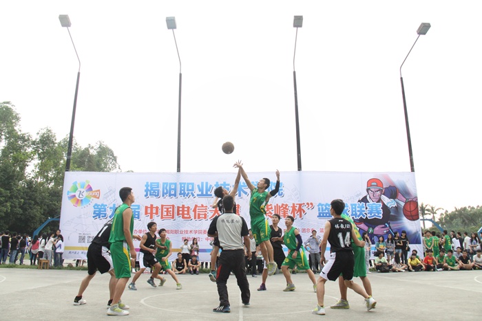 4月17日下午,院团委和艺术体育系联合举办的第九届中国电信天翼“紫峰杯”篮球联赛在我院灯光篮球场拉开帷幕。学院党委委员、副院长李桂鑫和相关部门领导出席开幕式,25支参赛队代表、裁判员代表参加开幕式。开幕式由团委书记郑骋主持。
