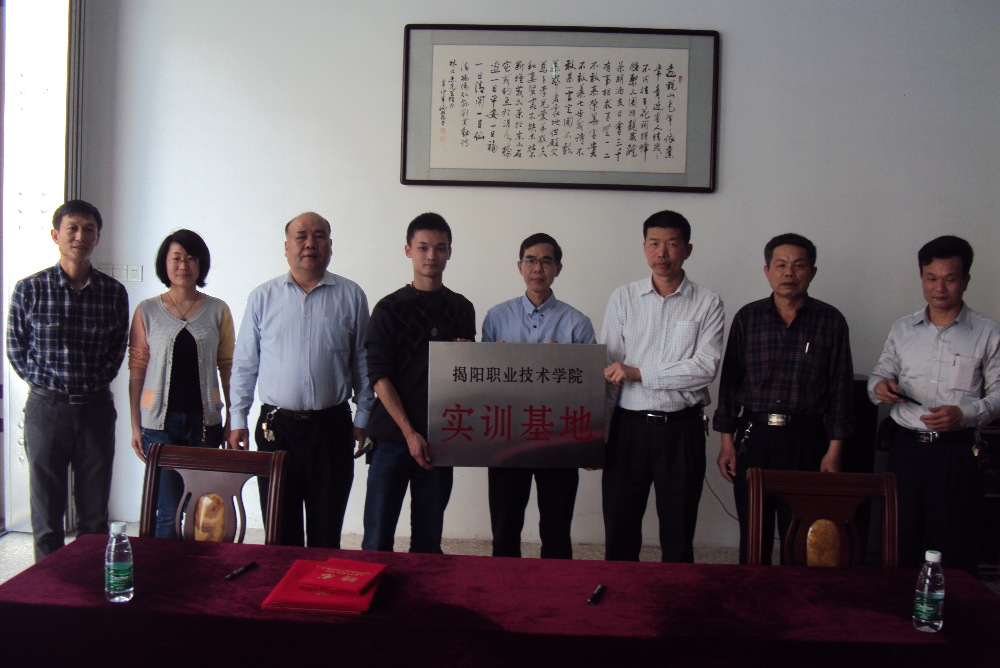 4月11日下午,我院与揭阳林浩玉雕工作室举行校外实训基地签字挂牌仪式。院长龚善初、机电系副主任孙培明、实训中心主任邢南亮、原经管系主任陈少雄、机电系宝玉石鉴定与加工技术教研室主任初秀、揭阳林浩玉雕工作室林浩先生、蓝城区科技局唐南山主任等参加了本次活动。