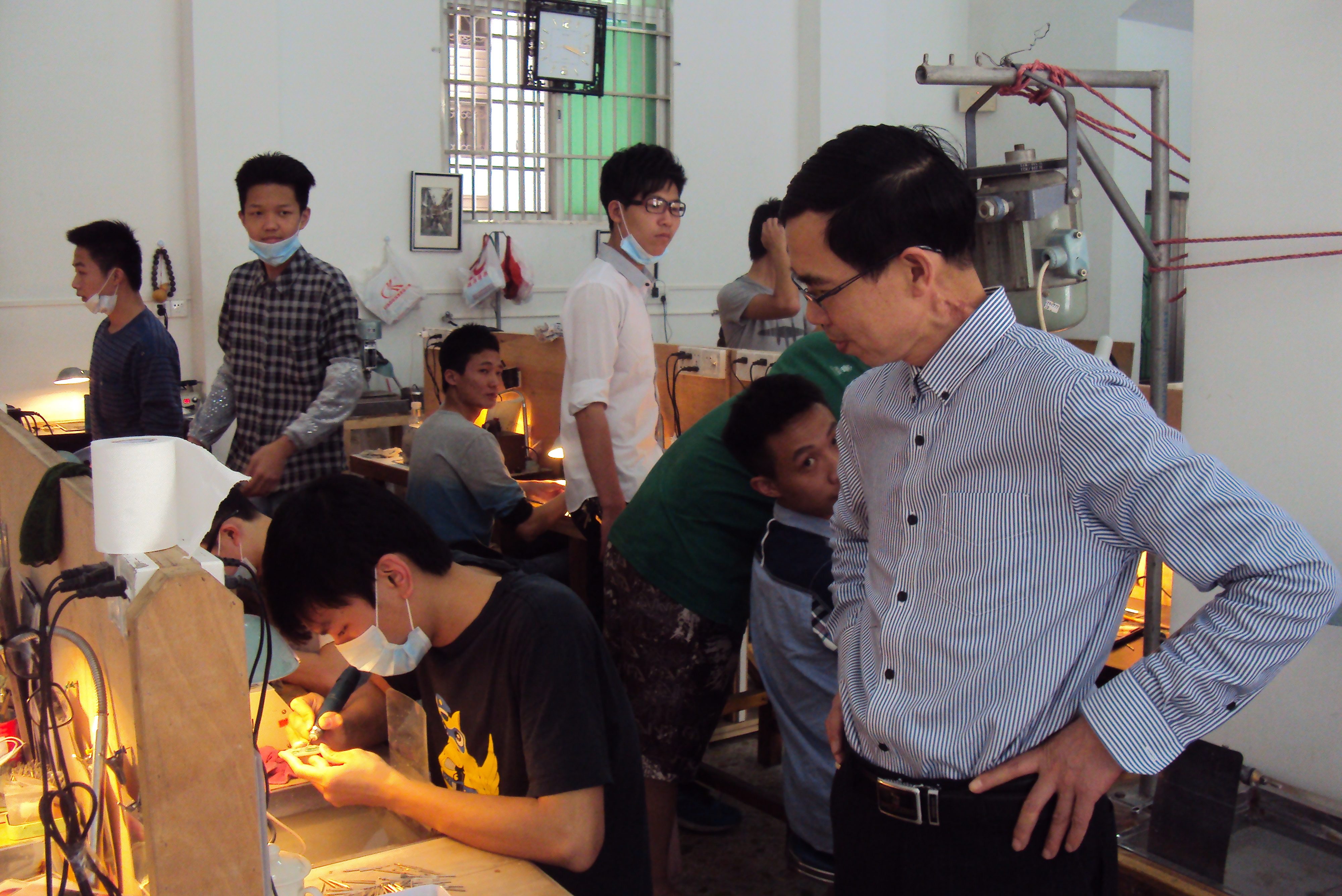在林浩先生的引导下,与会人员参观了工作室,并了解工作室的发展情况、主要业务。随后,龚院长与林浩先生签订校外实训基地协议书,并共同为揭阳林浩玉雕工作室学院校外实训基地揭牌,龚院长还为林浩先生颁发了“学院宝玉石鉴定与加工技术讲师”聘书。