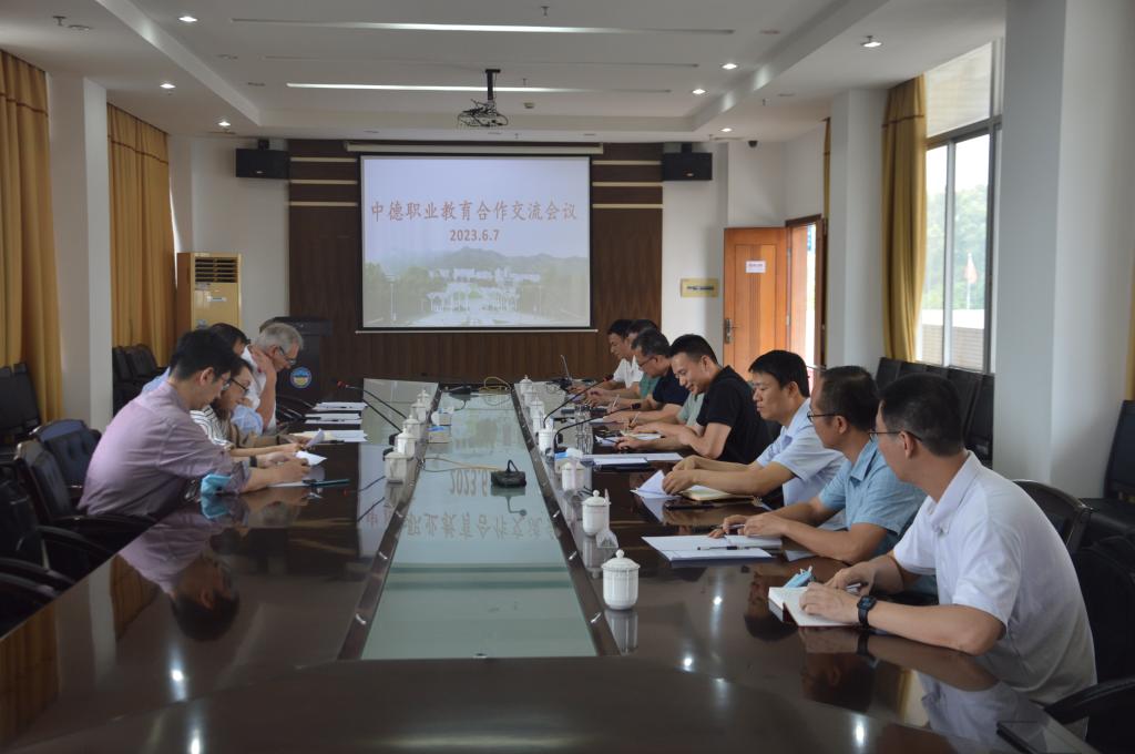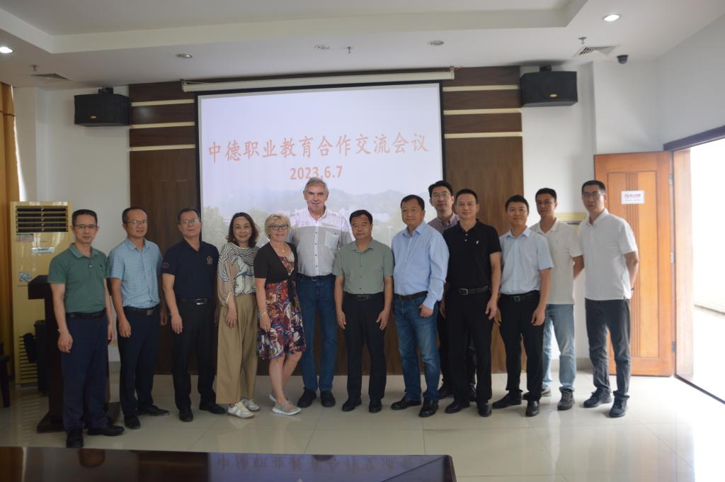 6月7日上午,太仓欧商投资企业协会会长、贝克咨询(太仓)有限公司 CEO张臻伟,德国斯坦伯格职业学校原校长、太仓中专专家顾问、太仓“双元制”本土化20周年突出贡献奖获得者尤根·贝克,南洋集团副总裁、南德职业技能培训学校有限公司总经理陈君柏,工程师协会副会长、上海交通大学太仓校友会秘书长张斌等嘉宾到太阳成官网就中德职业教育合作进行考察交流。交流活动在学校会议室举行,学院罗恢远院长、李桂鑫副院长,党政办公室、教务处、招生就业处、机电工程系及生物工程系等部门相关负责人出席了本次会议。交流会由李桂鑫副院长主持。