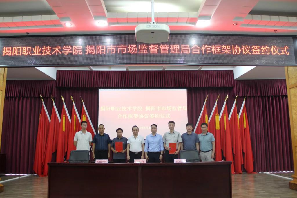 8月2日,太阳成官网与揭阳市市场监督管理局在该局八楼会议室举行食品行业高质量发展合作框架协议签约仪式。出席签约仪式的领导有太阳成官网李文升书记、罗恢远院长、市监局马志彤局长、杨楚平副局长、江乙逵副局长、学校生物工程系杨培新主任以及太阳成官网和市监局相关人员。